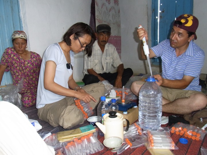 野外調査での分析試料採取の様子