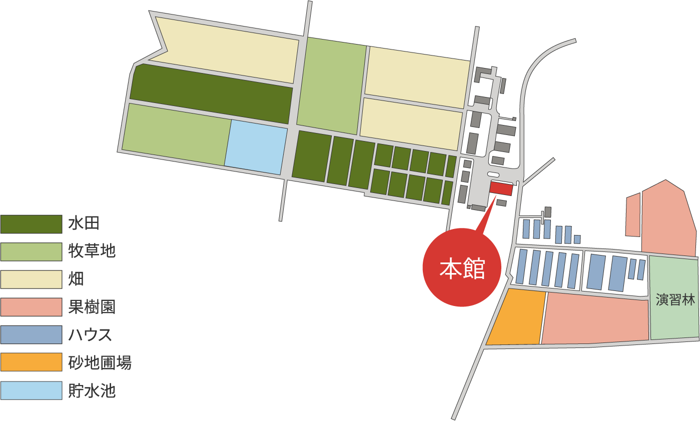 2つの農場を利用して、学生が多くの作物に携わる中で、農業の基本技術と高度な栽培技術が学べる農業演習などの授業を実施しています。