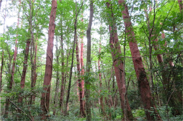 4つの教育研究林では、座学で得た森林の生態・保全に関する知識を現場で生かし、体得する里山森林実習などを実施しています。